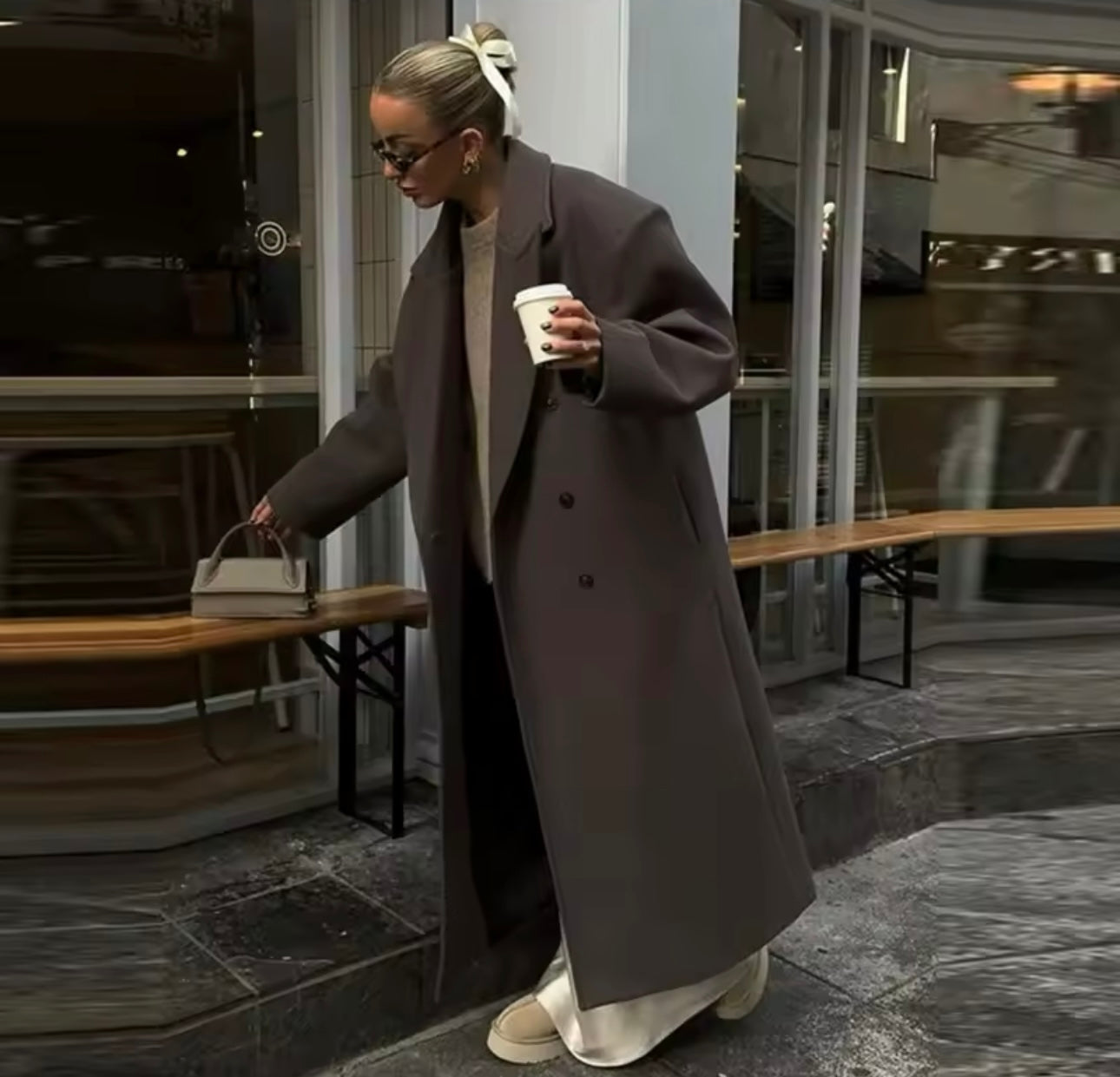 Dieser zweireihiger Mantel vereint Eleganz und Komfort. Ideal für zahlreiche Anlässe: Ob im Büro, bei besonderen Events oder als modischer Street-Style-Look.